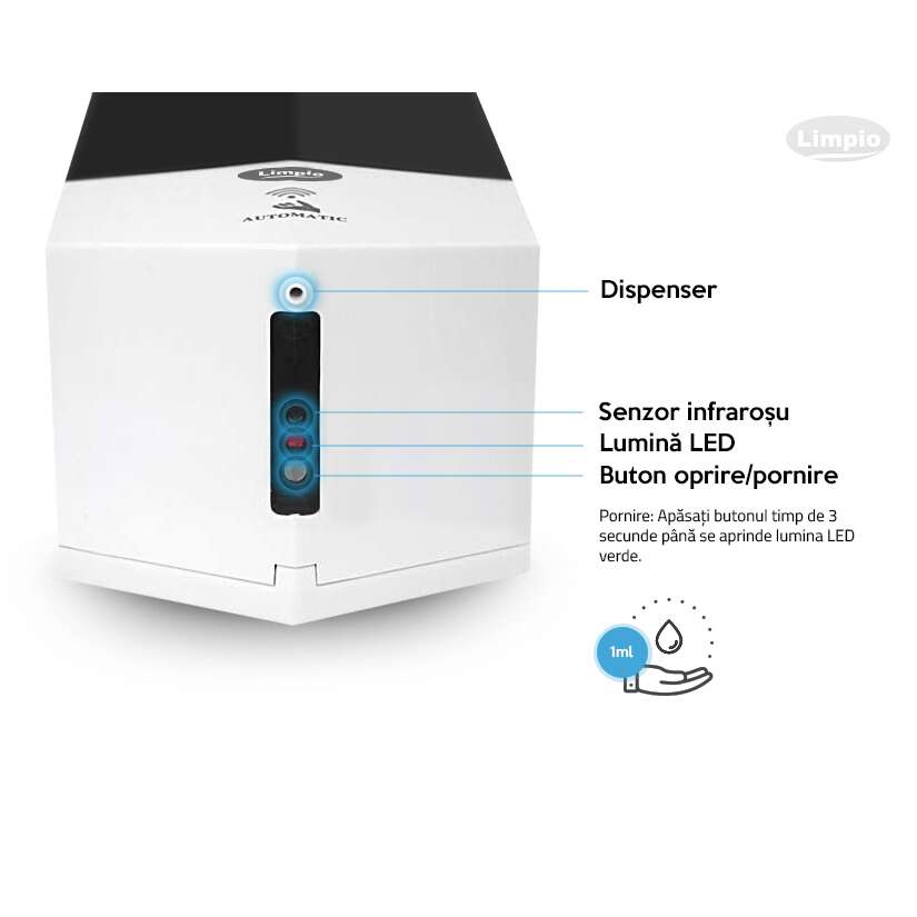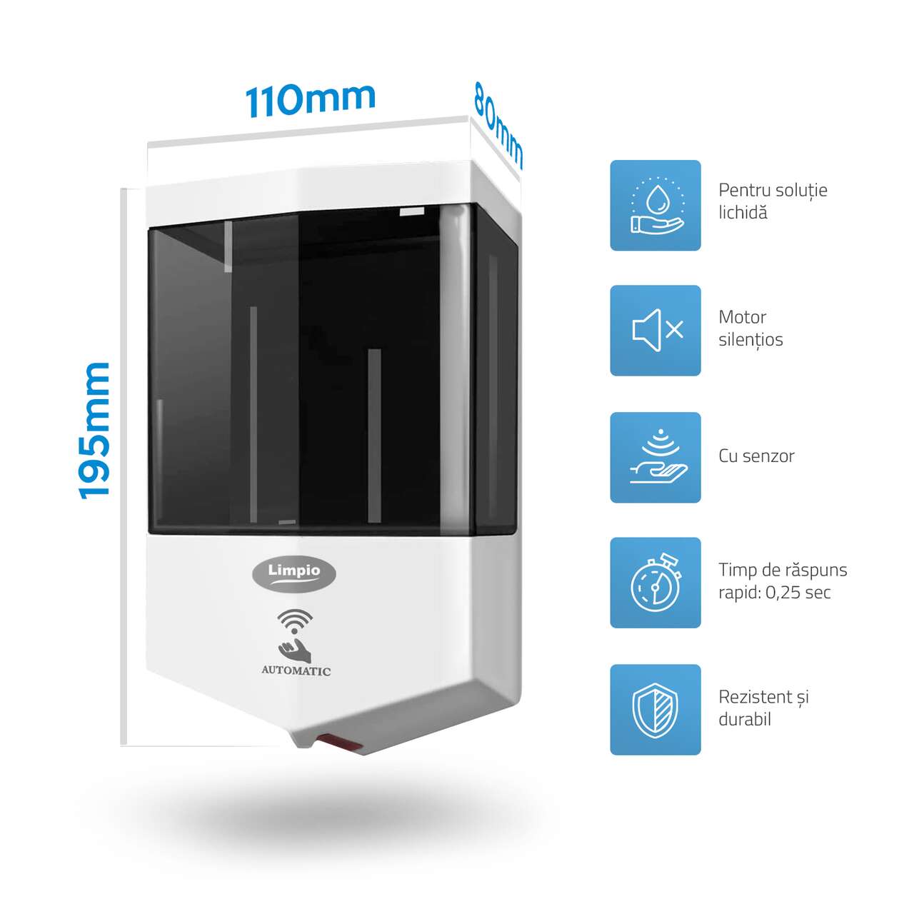Dozator cu senzor Limpio, pentru sapun lichid/dezinfectant, ABS plastic, 110 x 80 x 195 mm, 600 ml