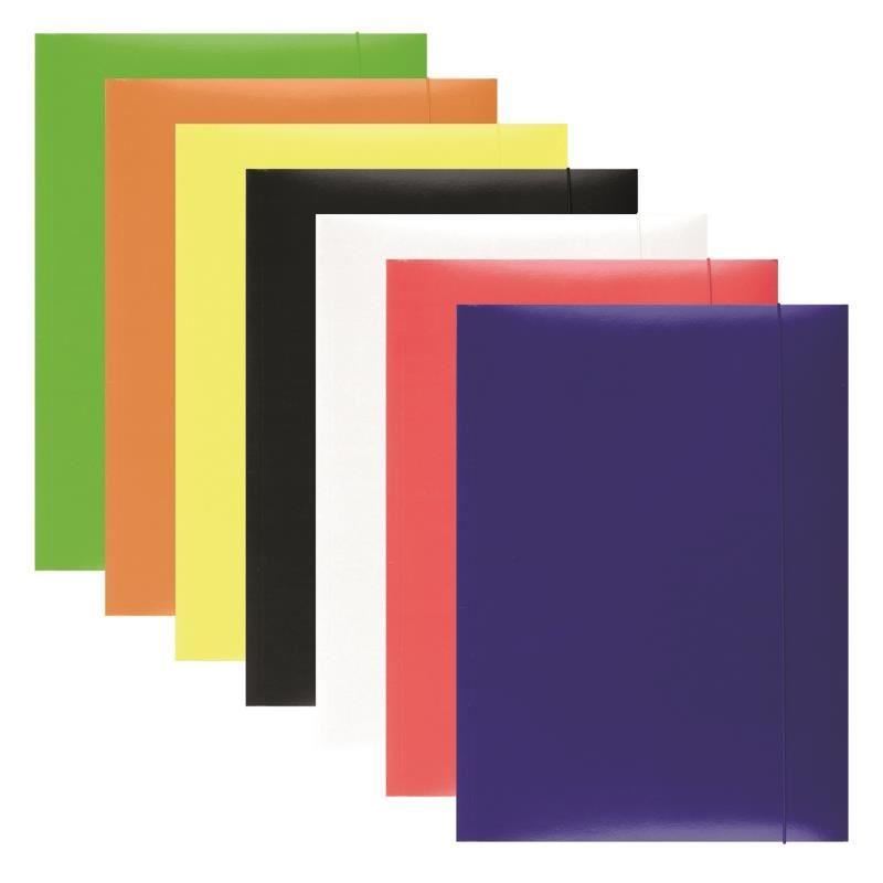 Mapa din carton cu elastic pe verticala , cu trei clape interioare pentru fixarea documentelor , realizata din carton lucios de 300gr/mp.
