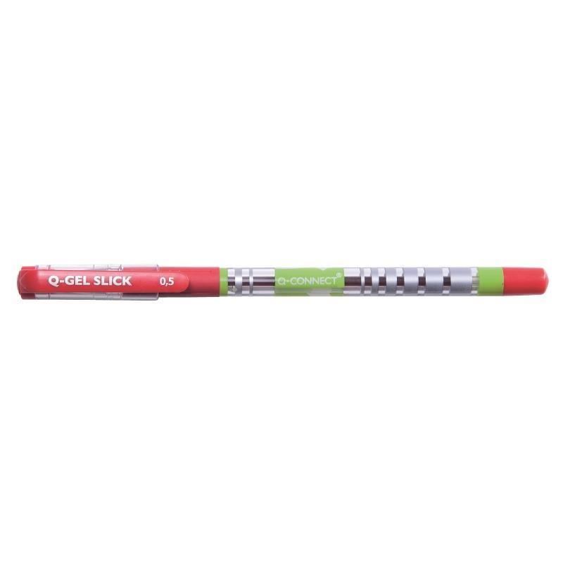 Pix cu gel Q-CONNECT Slick Needle Point, corp transparent cu grip, scriere de 0.3 mm, rosu