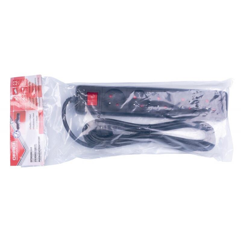 Prelungitor OFFICE Products cu intrerupator, 5 prize si cablu de 3 m, cu pamantare, negru