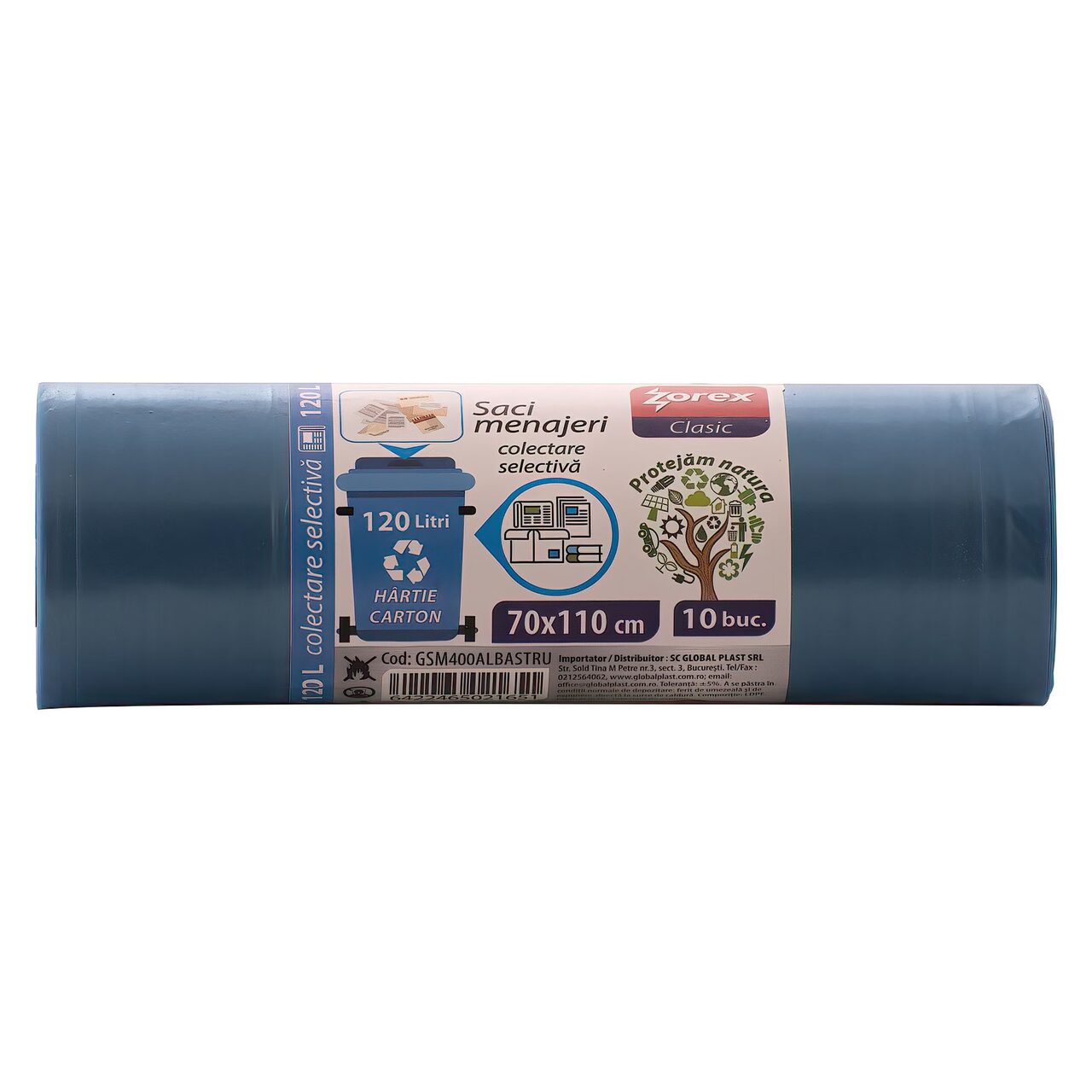 Saci menajeri colectare selectiva ZOREX Pro, 120 litri, rezistenti, LDPE, 10 buc/set, albastru (deseuri hartie)