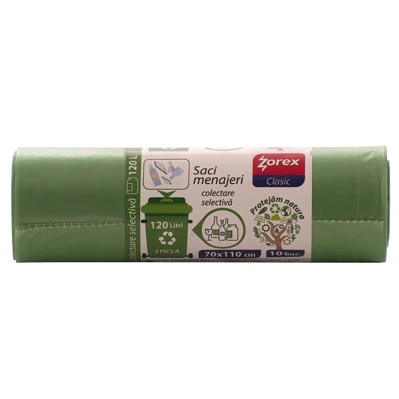 Saci menajeri colectare selectiva ZOREX Pro, 120 litri, rezistenti, LDPE, 10 buc/set, verde (deseuri sticla)